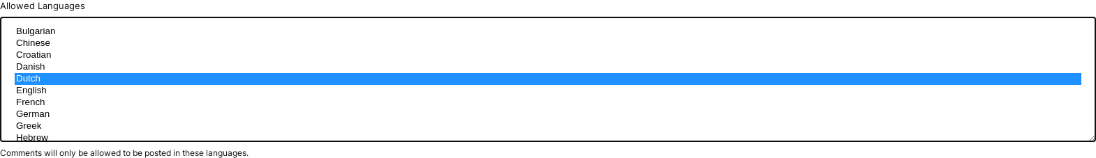 Standaard beperkt FastComments de talen die gebruikt worden om te reageren niet.