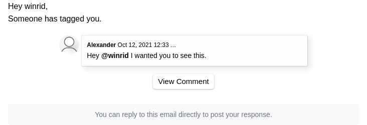 Gli utenti taggati riceveranno un'email che li informa di essere stati taggati, o menzionati, in un commento.