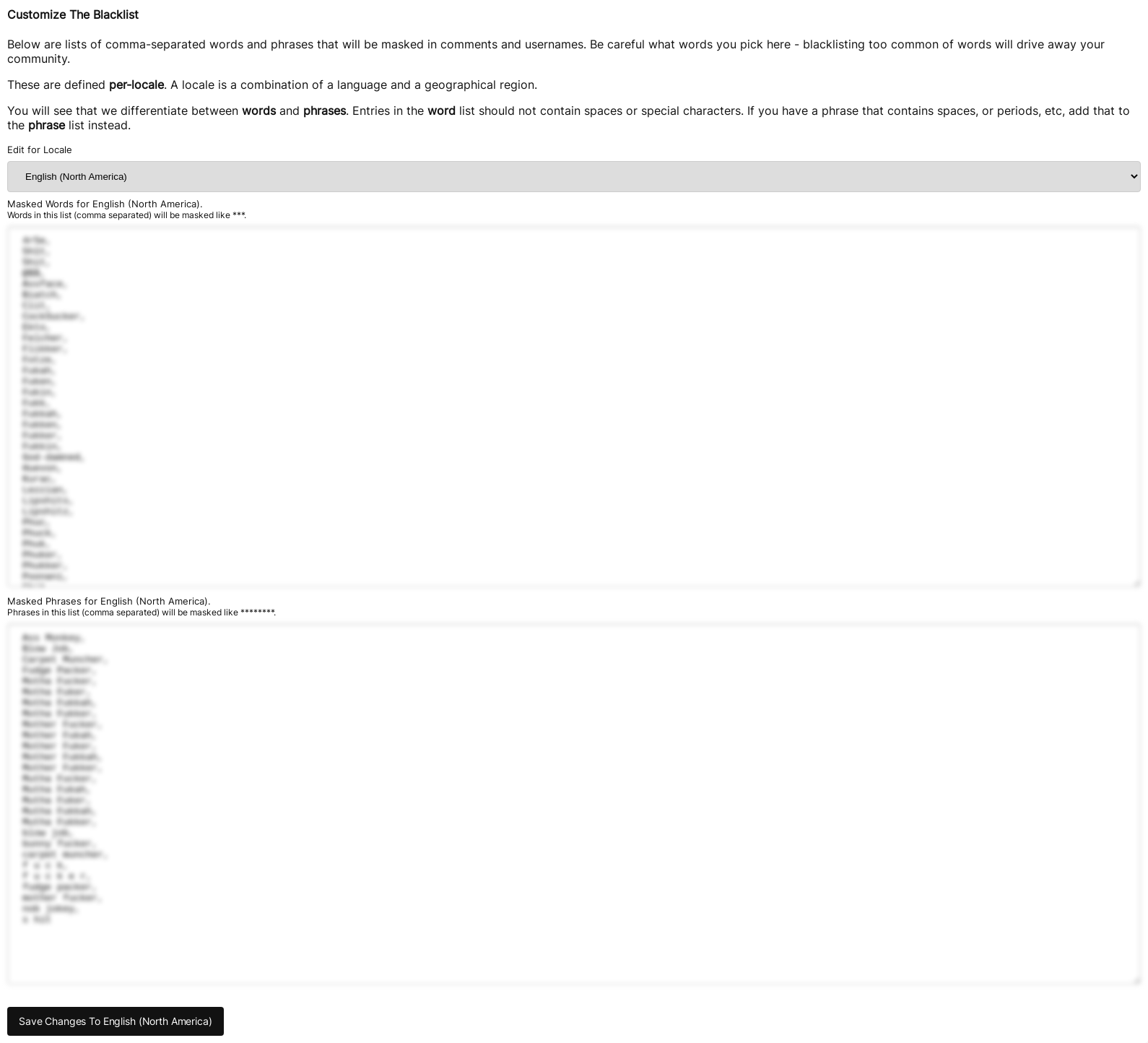 Additionally, you can disable Profanity Detection on the Edit Moderation Settings page.