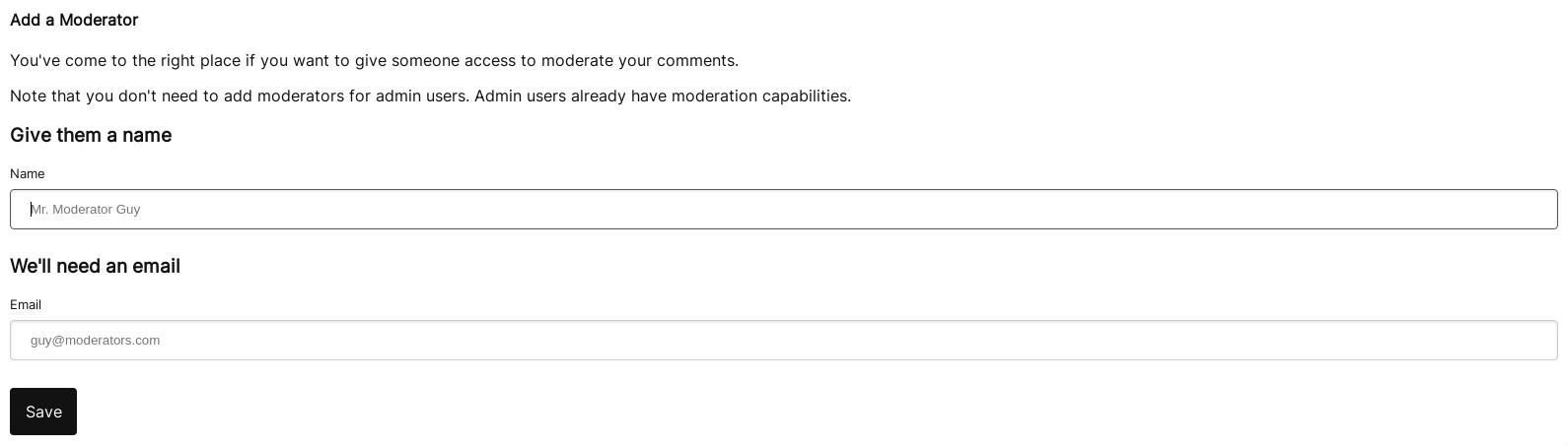 Let's take a look at the "Add a Moderator" page.