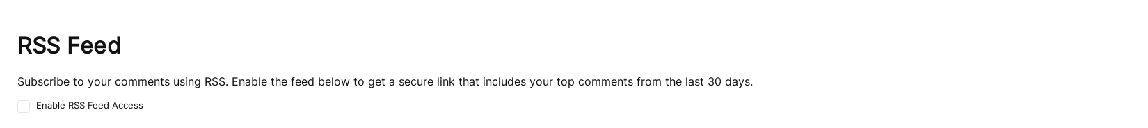 RSS-feeds in FastComments worden beveiligd met unieke, niet te raden UUID's. Echter, wanneer je je RSS-feed inschakelt, kan iedereen met de URL je reacties bekijken.